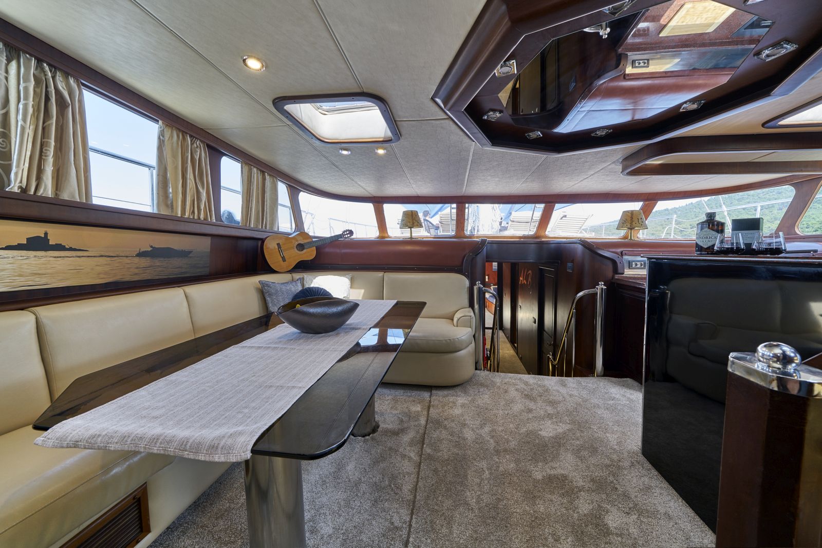 - Shaded dining area on the stern deck