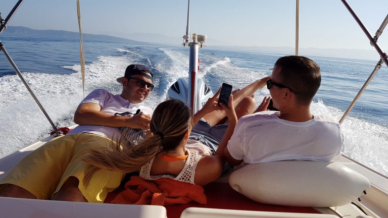 It is perfect for guests who are looking for a fun and unique way to spend their holidays while feeling comfortably and safely. The boat has 2x 300HP Mercury Verado and it has an excellent cruising performance. Cockpit space is well arranged with 4 bolsters seats with hydraulic absorber and five people bench seat extended by a huge sunbed.