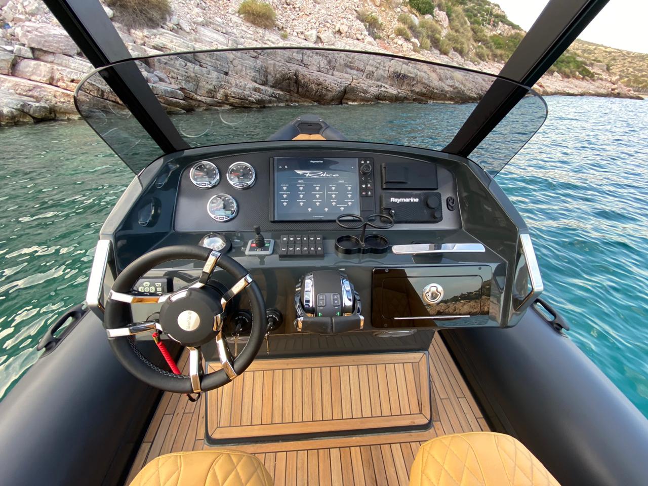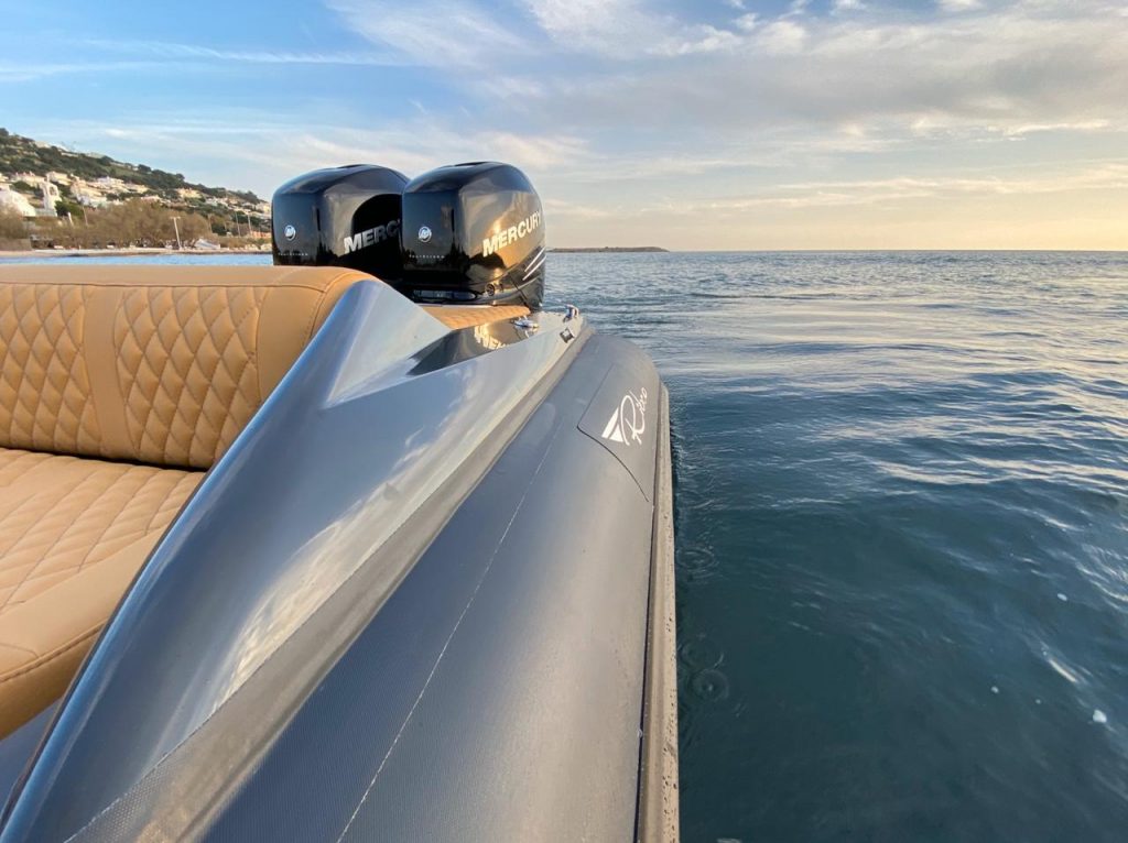 Powerful, luxury and extremely fast, RIBCO Seafarer 33 could reach up to 55 knots while remaining stable and comfortable for driving.  The sporty silhouette is underlined by a narrow aft platform, while the offshore pedigree of the model is visible in the sharp V-profile of the hull.